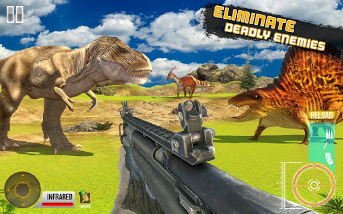 Dinosaur games are popular among shooting and hunting games. Today we will take you on a tour of the world's biggest safari jungle where you can hunt dinosaurs and many other carnivores in your favorite dinosaur hunting games. Shooting dinosaurs is of course a difficult task because deadly dinosaurs may attack you so need to be quick and sharp when dinosaur hunt. Wild dinosaur hunting survival is an action-packed dinosaur hunter 3d game where you can hunt different carnivores and angry dinosaurs with your sniper gun. Dinosaur shooting games will give you a chance to become a perfect Dino hunter by shooting Jurassic animals in dinosaur hunting games. Start your hunting journey with your favorite first-person dinosaur simulator to become a pro Dino hunter in wild hunter dinosaur hunting games. Be the best survivor by hunting dinosaurs in the safari jungle and prove that you are a brave Dino hunter in most advanced dinosaur games.