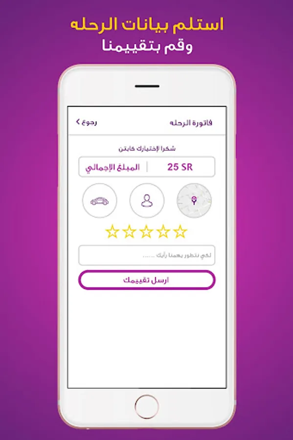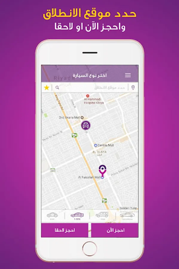 Saudi company provides a fleet of cars services distinguished to suit all categories through the application of smart phones and committed to provide a fast service and distinct and follows the vision of 2030 to become a strong company supporting the Saudi economy