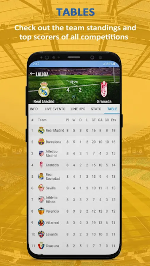 راستەوخۆ ئاگاداری سەرجەم هێرش ، شووت و گۆڵەکانی ئەو یارییانە بە کە ئارەزوویان دەکەیت . لە پاڵ پێکهاتەی سەرەکی و بێژەری نوسراو