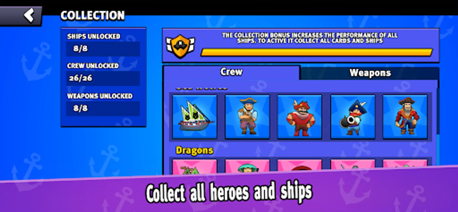 All on board! Build you own crew of the best sailors and go on the adventures. Become the legendary captain of seven seas.