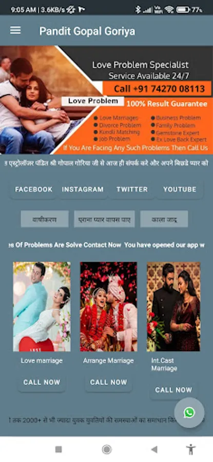We are providing solutions for love life, love marriage, after marriage affairs etc