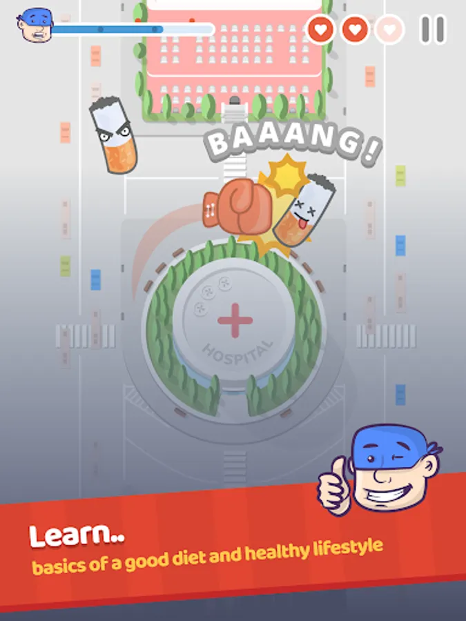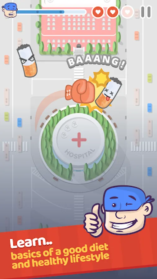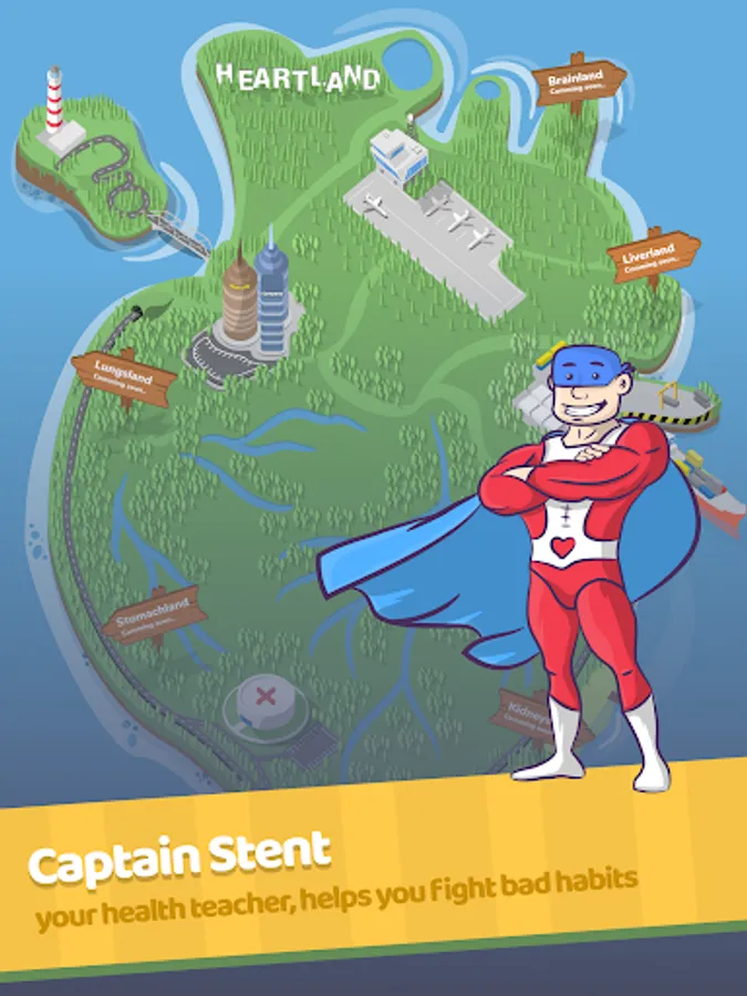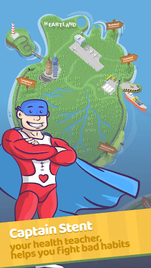 Join Captain Stent in a learning adventure through Heartland - a beautiful land that you want to protect. With him as your guide, you will fight off the bad habits that come your way so that you can live a better, healthier life! You will battle cigarettes, junk food, and more while learning how to make good decisions in your day-to-day life.