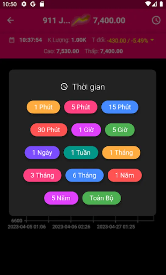 - Growth chart: 1 hour, 6 hours, 12 hours, 1 day, 3 days, 7 days, 1 month, 3 months, 1 year, the whole...