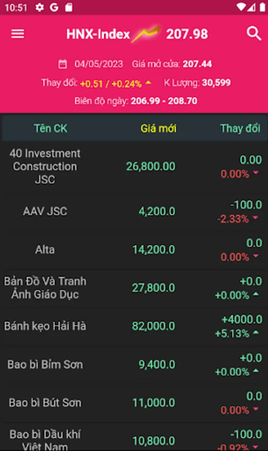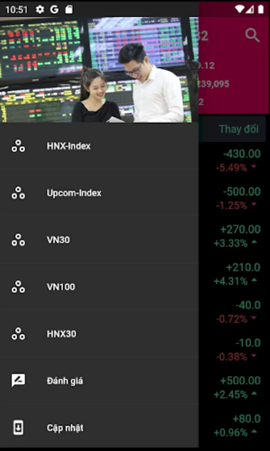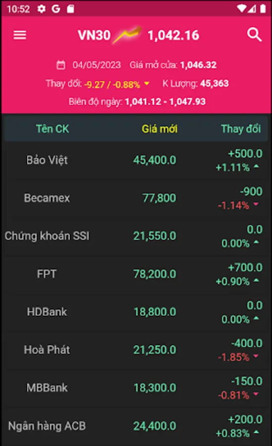 - Continuously update 24h stock prices of VN-Index, HNX-Index, Upcom-Index, HNX 30, VN 30, VN 100...