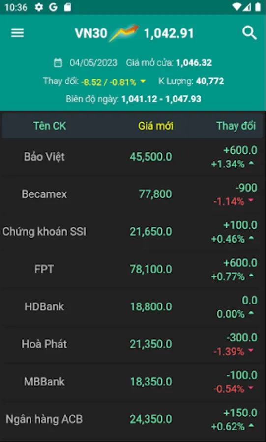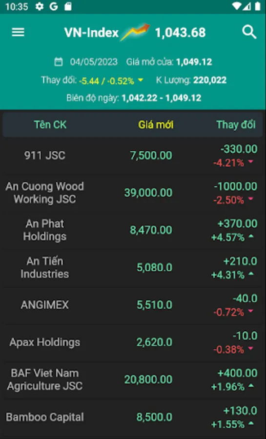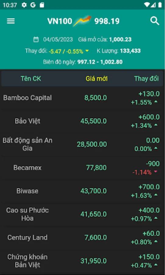 - Continuously update 24h stock prices of VN-Index, HNX-Index, Upcom-Index, HNX 30, VN 30, VN 100...