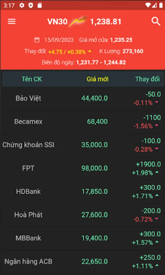 - Continuously update 24h stock prices of VN-Index, HNX-Index, Upcom-Index, HNX 30, VN 30, VN 100...