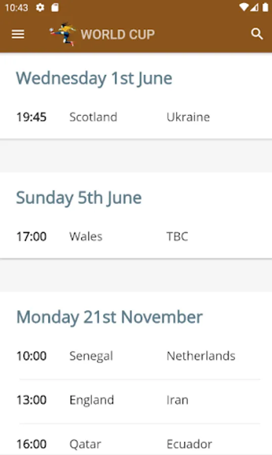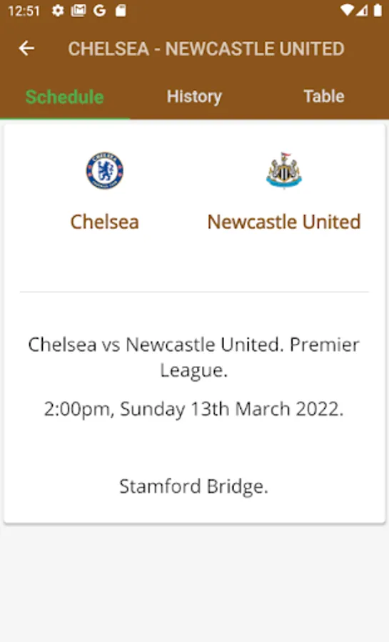This application is a football schedule application, it helps you to know the football match times and live matches results. You can know today matches, or matches in any specific date