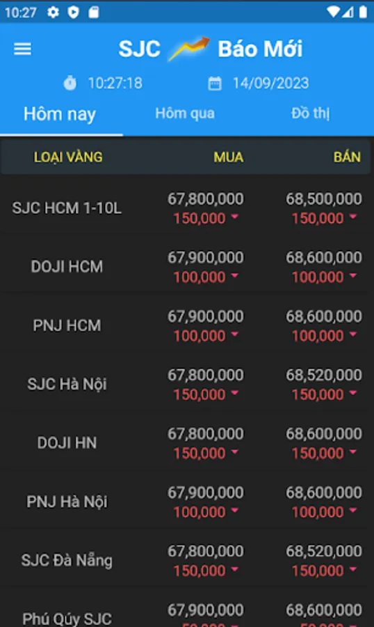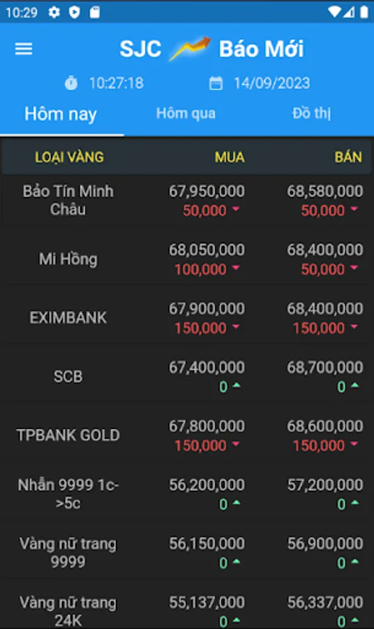 - Graphs of SJC, PNJ, Bao Tin Minh Chau, Mi Hong, Phu Quy...