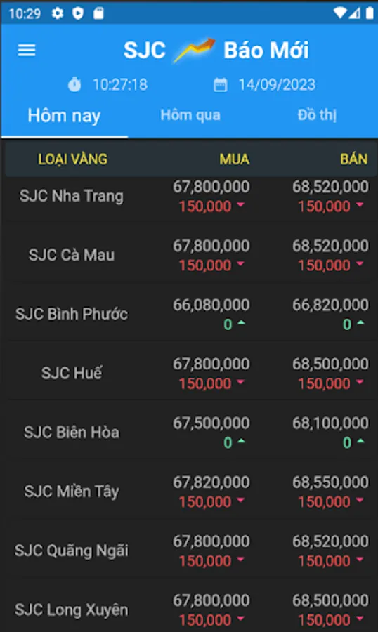 - SJC gold price in Ho Chi Minh, Hanoi, Da Nang, Ca Mau, Hue, Nha Trang, Bien Hoa, Bac Lieu, Binh Phuoc, Ha Long, Long Xuyen, Western region, Phan Rang, Quang Nam, Quang Ngai, Quy Nhon, Phu Quy, Bao Tin Minh Chau...