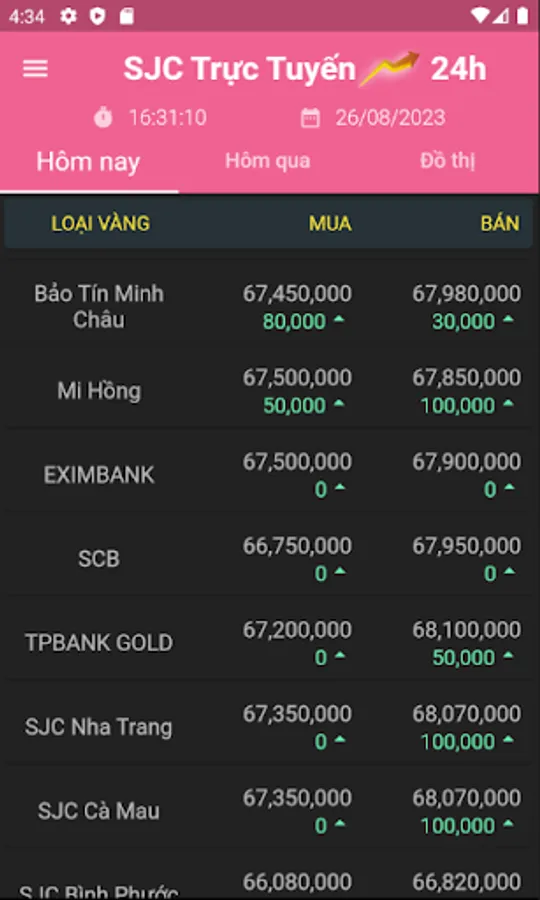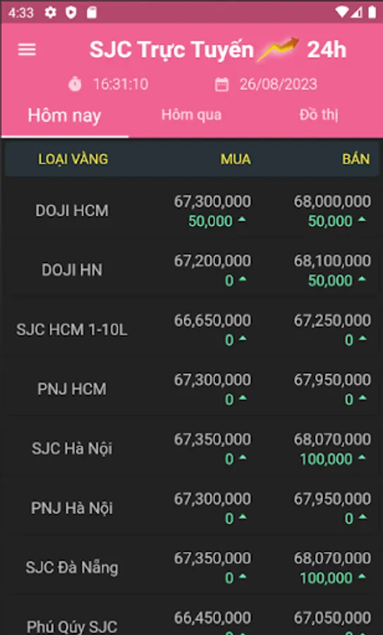- SJC gold price in Ho Chi Minh, Hanoi, Da Nang, Ca Mau, Hue, Nha Trang, Bien Hoa, Bac Lieu, Binh Phuoc, Ha Long, Long Xuyen, Western region, Phan Rang, Quang Nam, Quang Ngai, Quy Nhon, Phu Quy, Bao Tin Minh Chau...