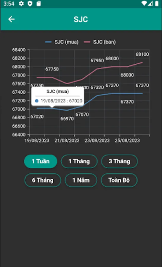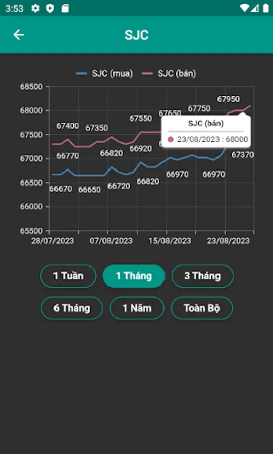 - Hiển thị đồ thị theo tuần, tháng, năm và toàn bộ thời gian