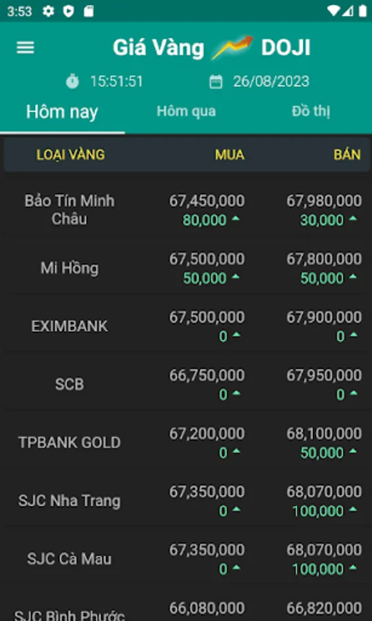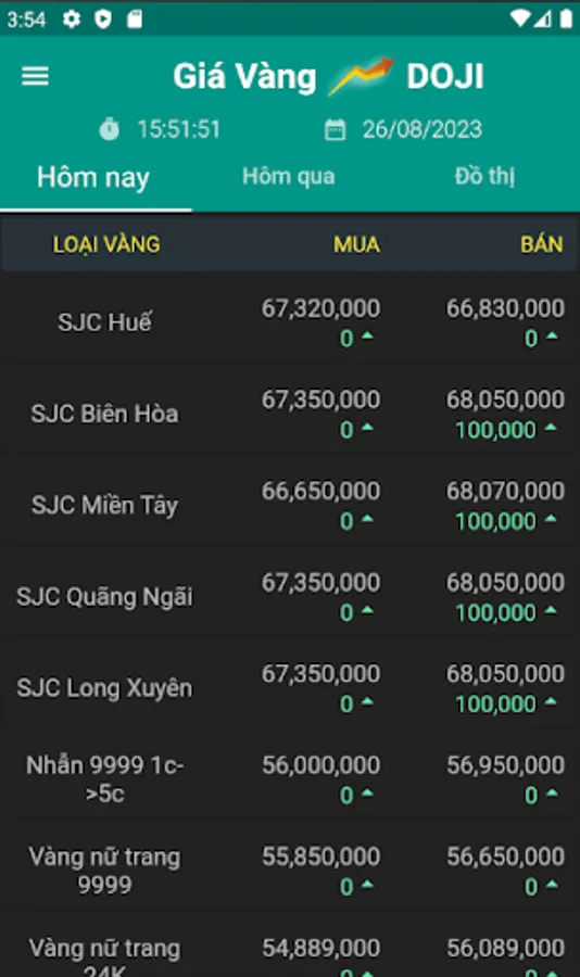 - Xem giá vàng hôm nay, hôm qua