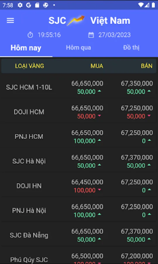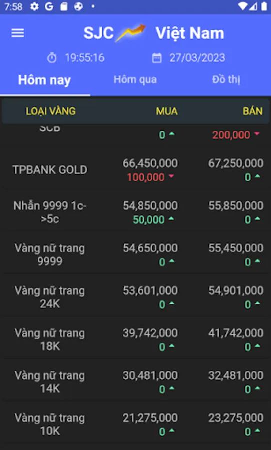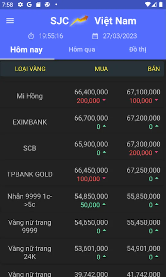 - Graphs of SJC, PNJ, Bao tin minh Chau, Mi Hong, Phu Quy ...