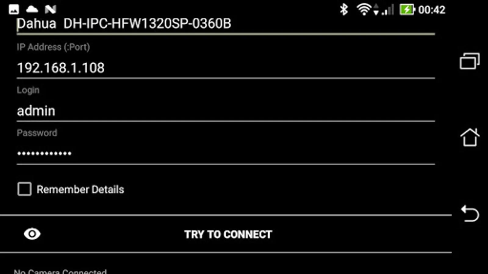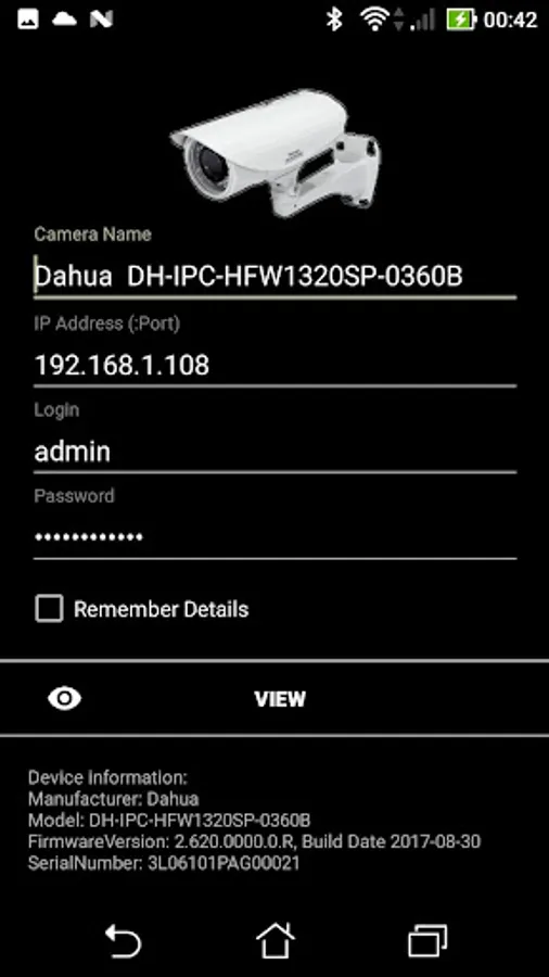 To connect to the camera, it is necessary that the phone (tablet) is on the same network as the camera. You need to know her IP address, login and password. These parameters are set in the desktop application attached to your camera.