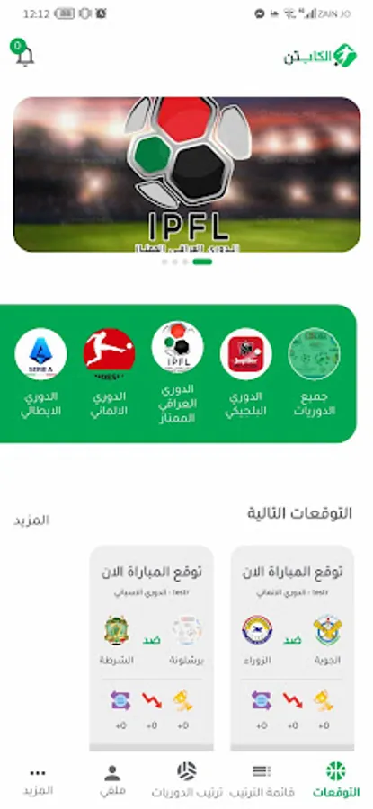 The "Captain" application is the leading application for football fans in the Iraqi league, European and international leagues, as it allows users to experience a unique and exciting sports predictions. With its user-friendly interface and outstanding features, fans can enjoy predicting match results and collecting points to earn valuable rewards and prizes.