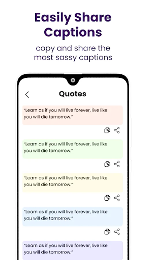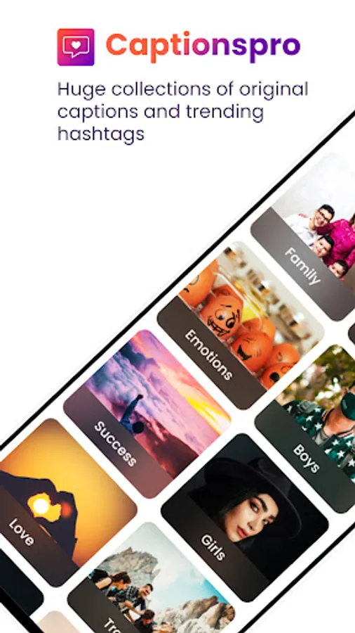 Our user-friendly interface and powerful search feature let you discover captions by category, tags, gender, and emotions. Copy and share with just a tap, effortlessly enhancing your posts and boosting your social media game.