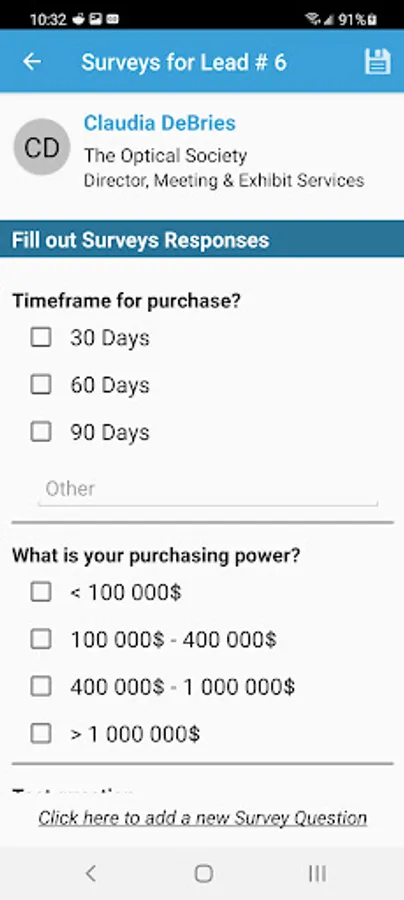 Add sophisticated surveying capabilities, including multiple choice and open text responses. Add and extend your survey on the fly – while at the show!