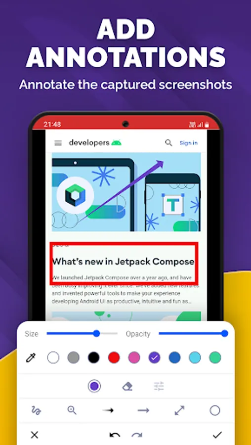 You can use the annotation or hand drawing tools for manipulating the captured screenshot. Lots of options are available like drawing, frames, stickers, adding text, cropping, and many more.