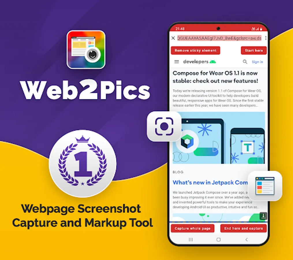 Web2Pics screenshot apps allow you to capture full or partial screenshots of web pages, including long scrolling pages that may not fit on a single screen.