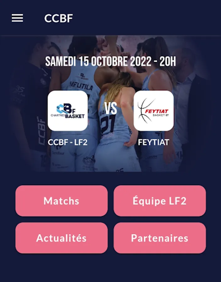 Application allowing to consult all the news of the Women's Basketball Club of Chartres. You can consult the results, the schedule of the next matches, the news, discover the team and see all the partners of the CCBF team. A notification system will allow you to not miss any club news!