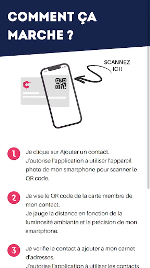 This tool allows a simple scan of the member card to add the contact to his address book.