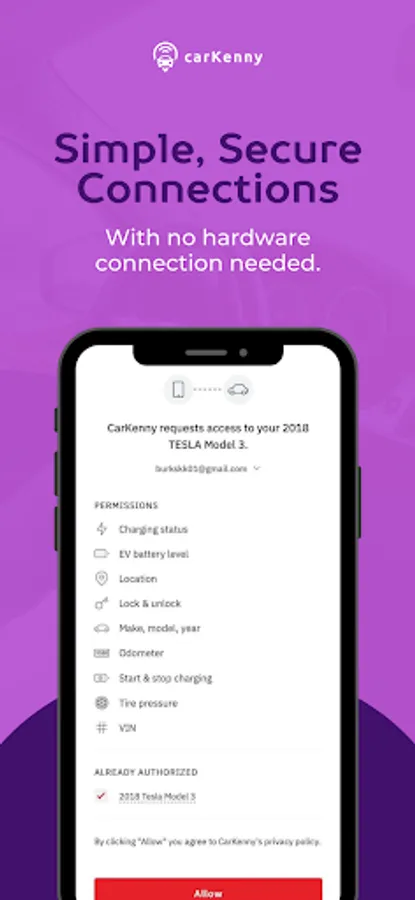 • Follow the carKenny in-app instructions to link your car using the account information from above.