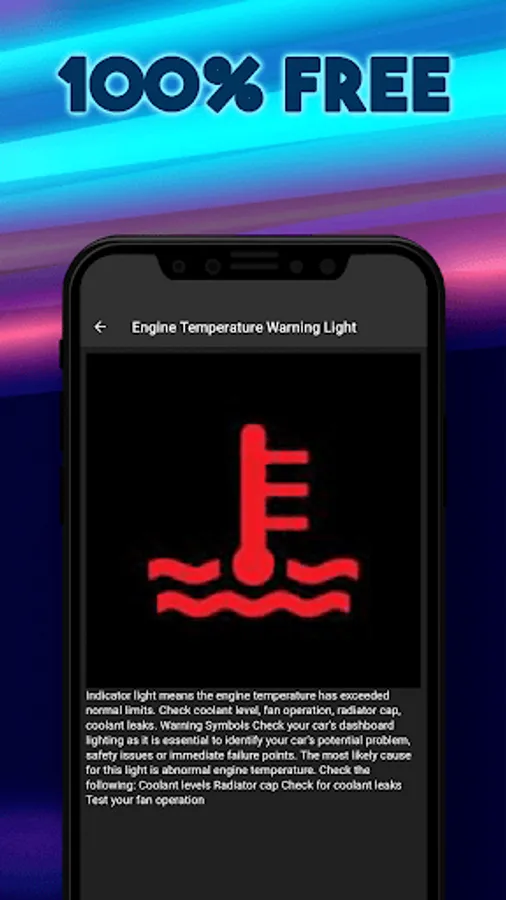 If an indicator light on your dash is on, all you have to do is checking our app and search for that symbol to understand the meaning of it and keep your car running in top condition.