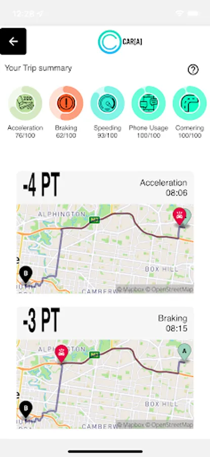 CAR[A] (CAR + ADVANTAGE) is a virtual coach app that digitises the way people drive. The CAR[A] app runs off your mobile and immediately connects with the vehicle and flags the individual weaknesses of the driver. This gives them coaching and insights to be better drivers, helping them understand where they can improve and be motivated to be safer on the road.