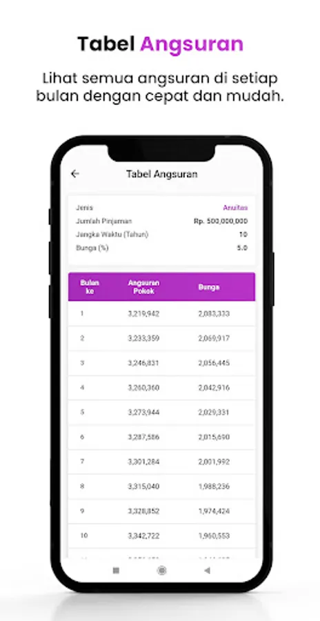 The calculation results are also provided in the form of an installment table, so you can easily see how much you have to pay each month.