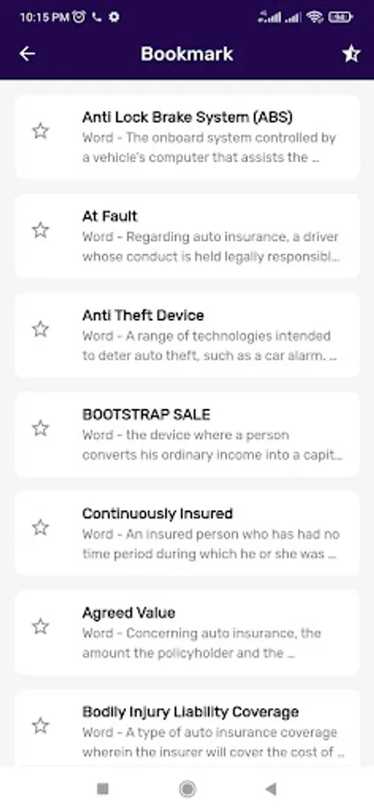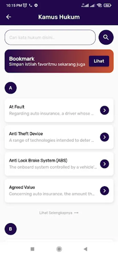 The main feature of this application is a list of thousands of legal terms, adages, bookmarks, and word histories that you have read.