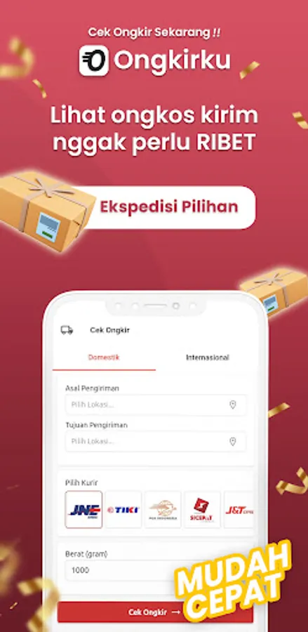 Ongkirku is an application that can help you find postage prices from various selected expeditions. You can determine the shipping price wherever you are, both in Indonesia and abroad.