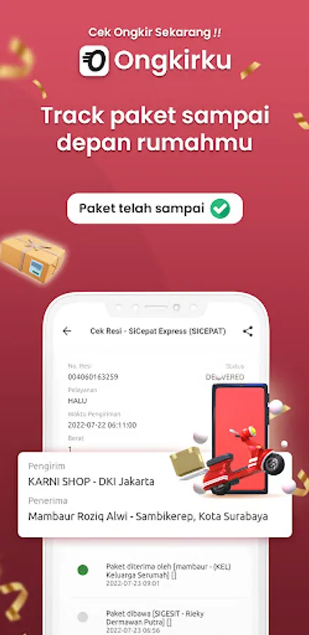 In addition, with the Ongkirku application, you can track where your package is currently located. So you don't have to worry anymore if your package doesn't arrive.