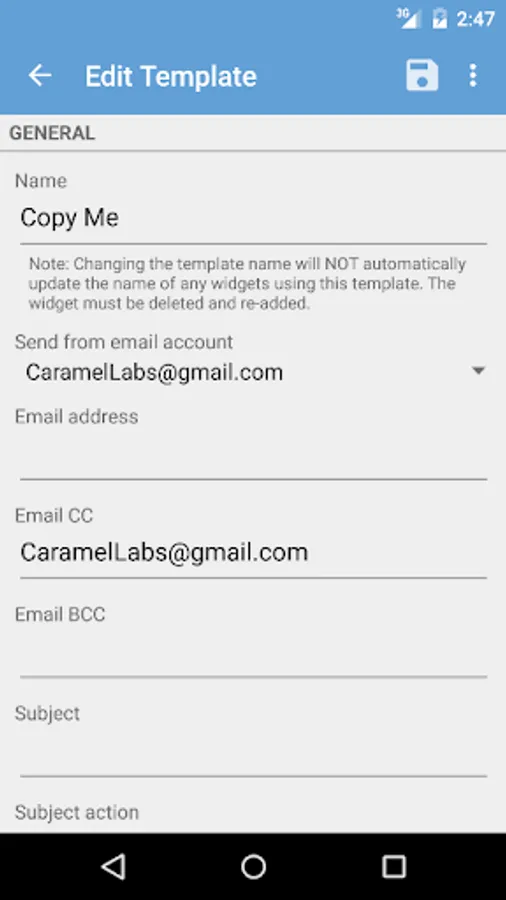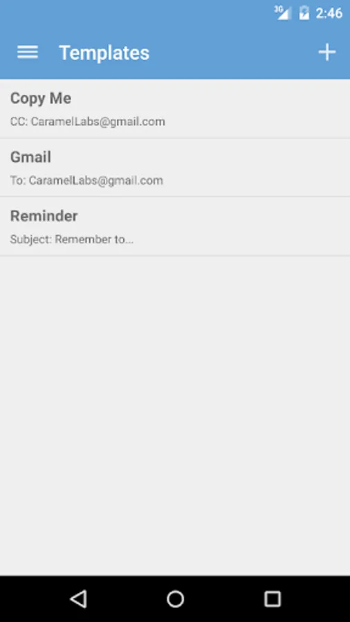 You can set up multiple email templates (which include the email recipients, subject, message, and even attachments) for tasks, work, personal, etc. Then use those templates to quickly create a pre-populated email or to share something from another app using the Share menu. You can also create shortcuts on your home screen using a template.