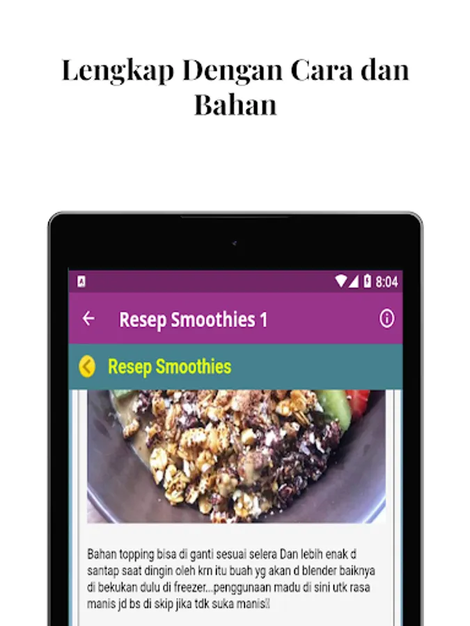 In the application there are Fruit and Vegetable Smoothies Recipes that are summarized easily for you to practice everyday that will always be up to date and updated. As a complement to Smoothies for Detox then, the Various Ways to Make Smoothies for Breakfast in one application can be additional for us to learn and practice. Do not miss to get the Various Ways to Make a Smoothie Bowl that will always be updated for you all, of course you will never lose to download a delicious smoothies recipe application for this weight loss !! What are you waiting for, download it now.