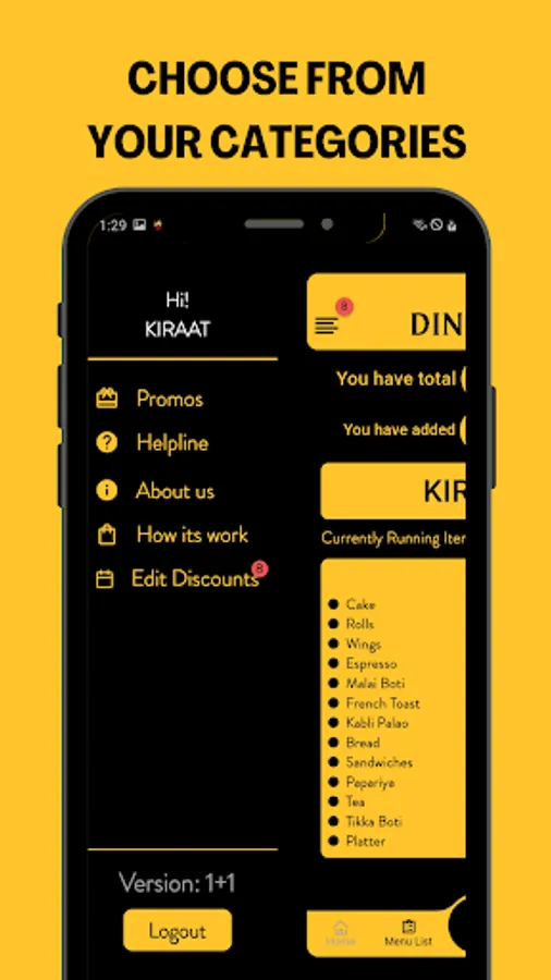 DINIC is all about reservations and discounts. Customers can look at the menu of their desired restaurants and can avail the exact discount that is available at the chosen time. Each restaurant has customised discounts available at different times. Customers can reserve seats at their desired restaurants which will help them avail the restaurant's time specific discounts.