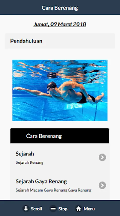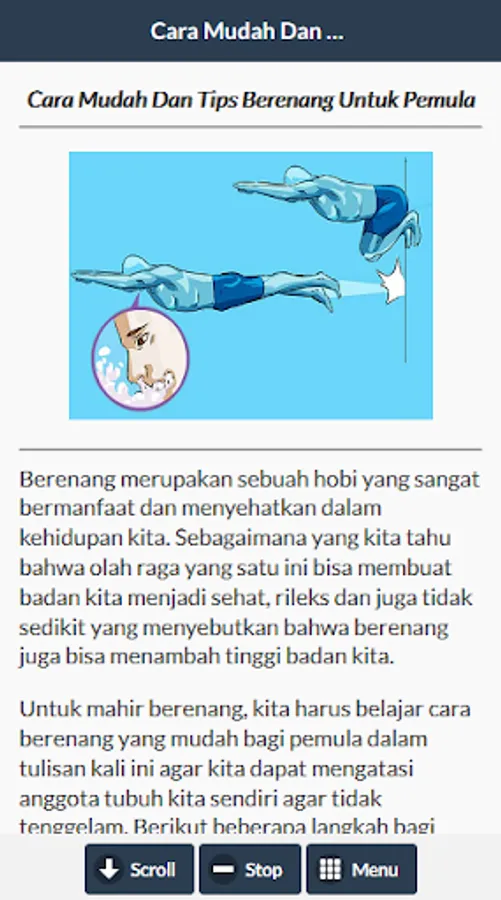 Swimming for recreational purposes and competitions is carried out in the pool. Humans also swim in rivers, lakes and seas as a form of recreation. Swimming sports make the body healthy because almost all of the body's muscles are used when swimming.
