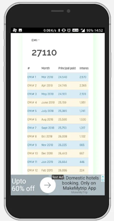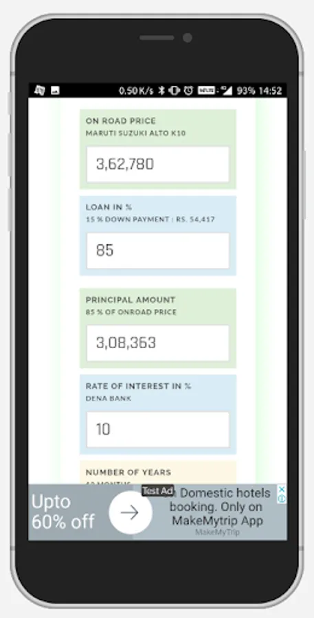 It shows what will be your monthly EMI, for the years and upfront payment you entered. It will also show you complete payment chart of your tenure, including principle amount deduction and interest applied each month.