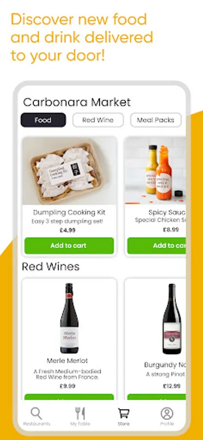 Carbonara also connects you to restaurants that offer restaurant-inspired meal kits and sell their own dry goods like sauces, ready to make food, and more, all delivered directly to you.