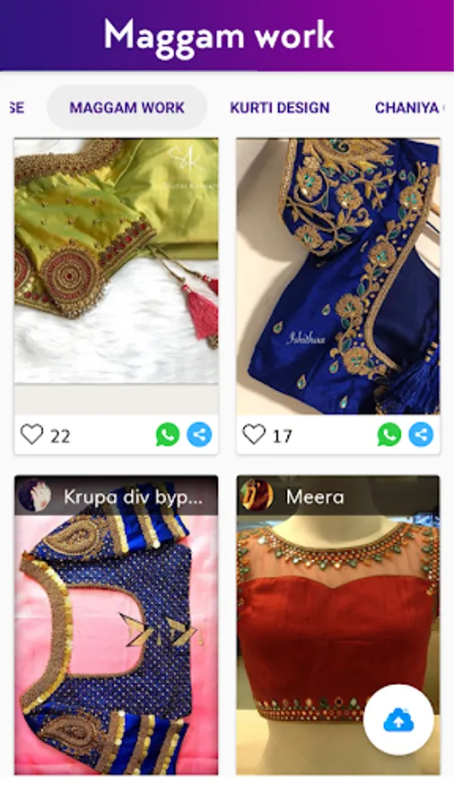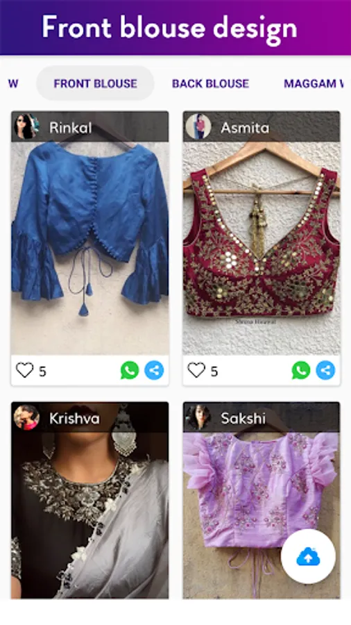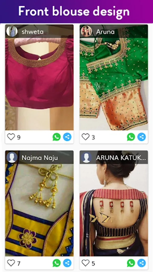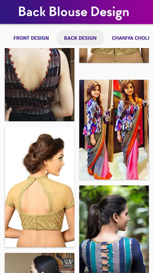 Along with blouse designs, we also added other ladies costume designs like designer saree, Anarkali designs, Chaniya choli designs, Angarkha and lots of other types. you can browse a huge collection in every category and you can easily save or share any photo you like with your friends, like designs and yes, now you can also upload your own designs and get popularity on our platform. we also provide a zoom feature so you can see each and every detail from a closer look.