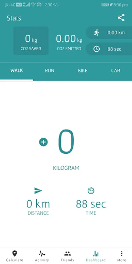 This app automatically detects your current transportation mode (e.g. by car, bus, walking or cycling), monitors the distance you have been travelling and estimates how much CO2 you are emitting by using that transportation mode.