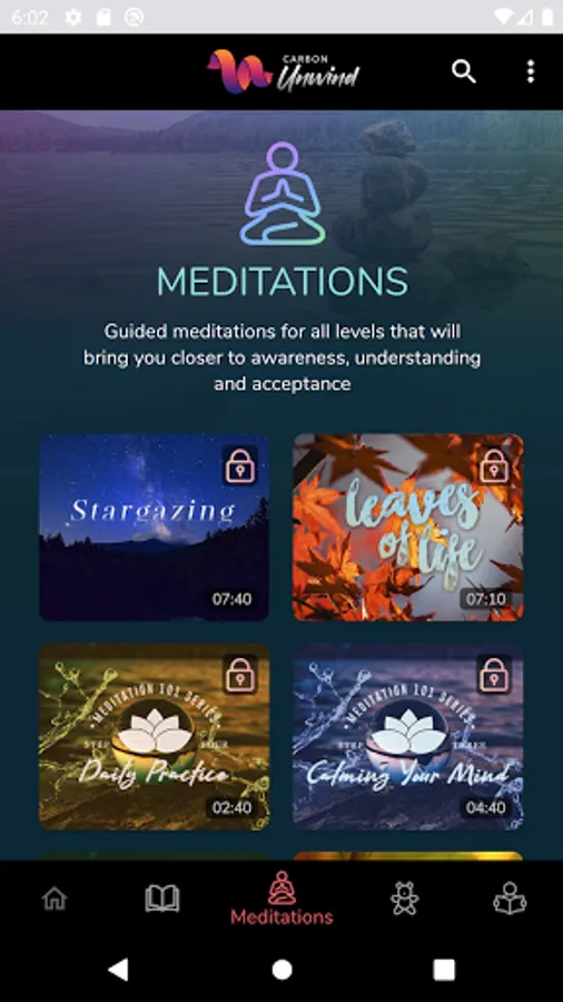 - Guided meditations for beginner to advanced in different time lengths