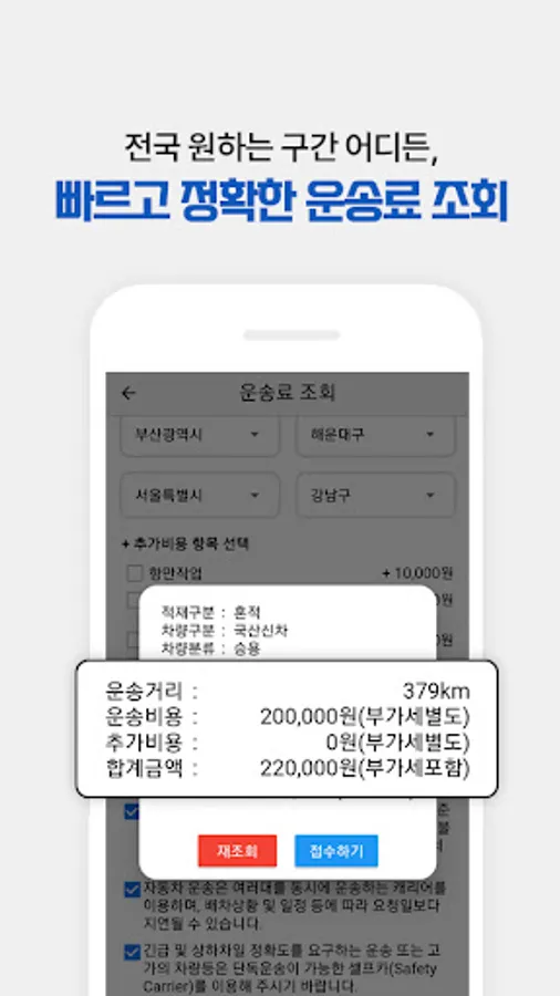 It is an app that asks for dispatch and transportation by inquiring and receiving the national vehicle transportation (consignment) standard transportation fee through the Carcall Manager shipper app.