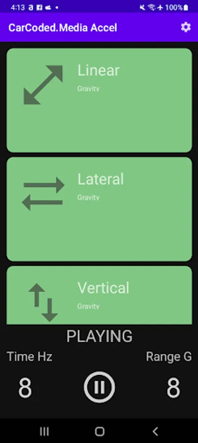 Selectable rate and range. Scale available 1 - 200 octaves. Linear, Lateral, Vertical and Magnitude media play list. ]