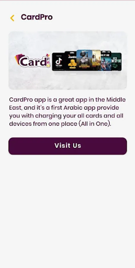 كارد برو تطبيق خدماتي يسهل على المستخدمين اضافة رصيد للهاتف من خلاله شحن نقاط للالعاب بكل سهولة