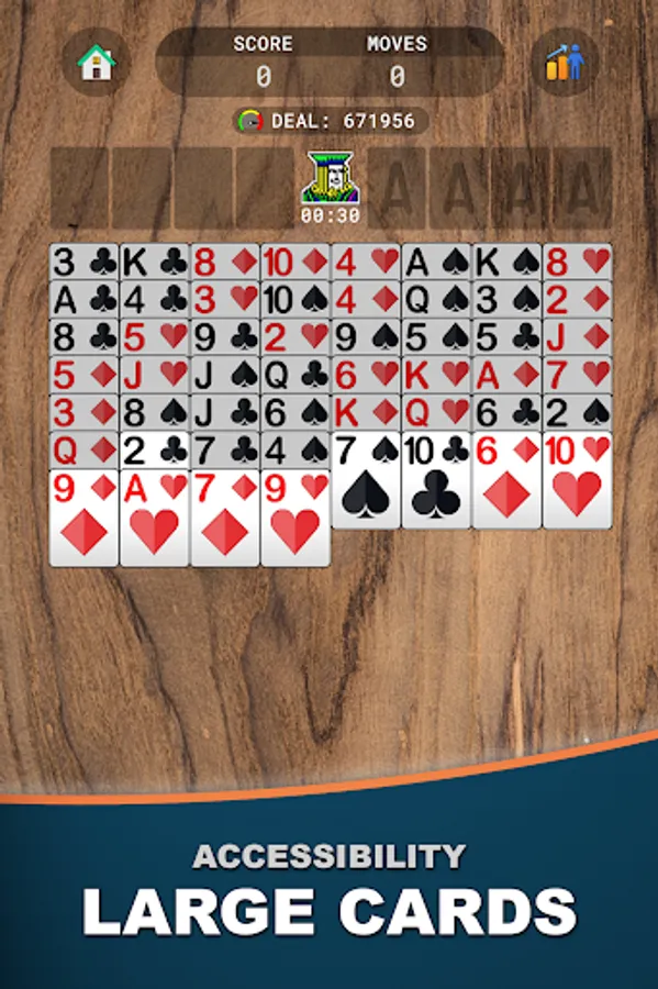 - Original FreeCell rules with optional easier modes for beginners