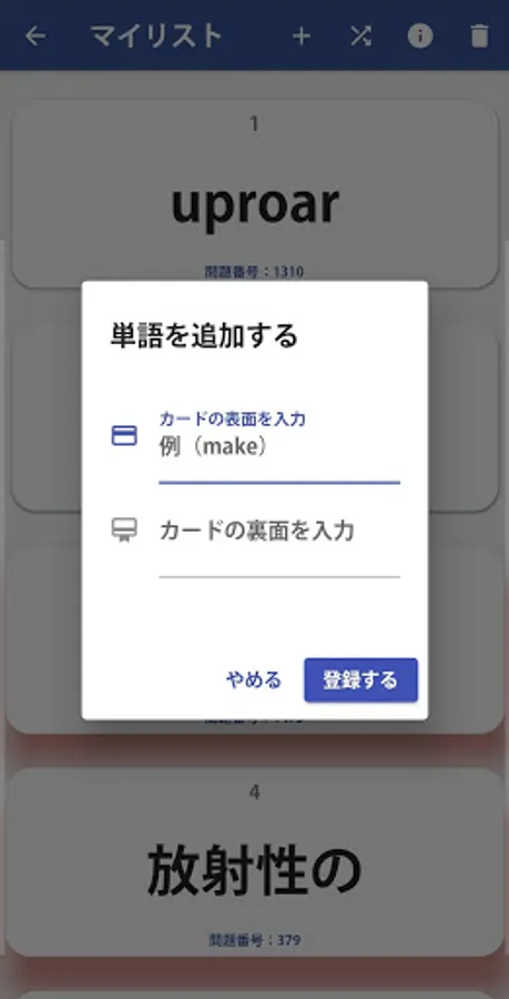 You can also add words to My List manually, so it is an unprecedented vocabulary that allows words from the vocabulary and self-registered vocabulary to coexist.