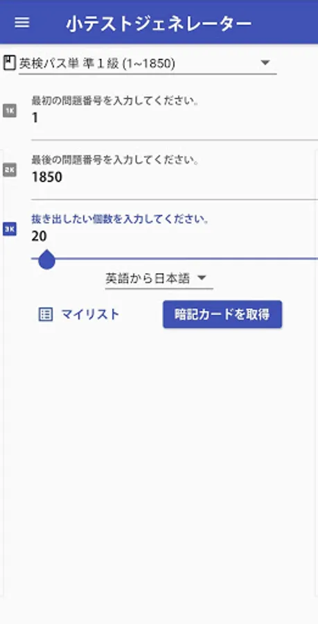 You can randomly create your own vocabulary by specifying the range from the many vocabulary registered in the quiz generator.