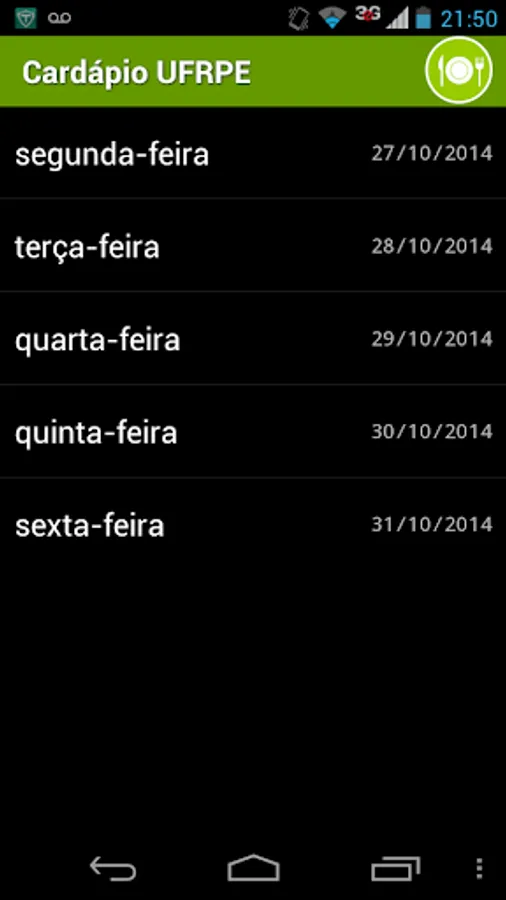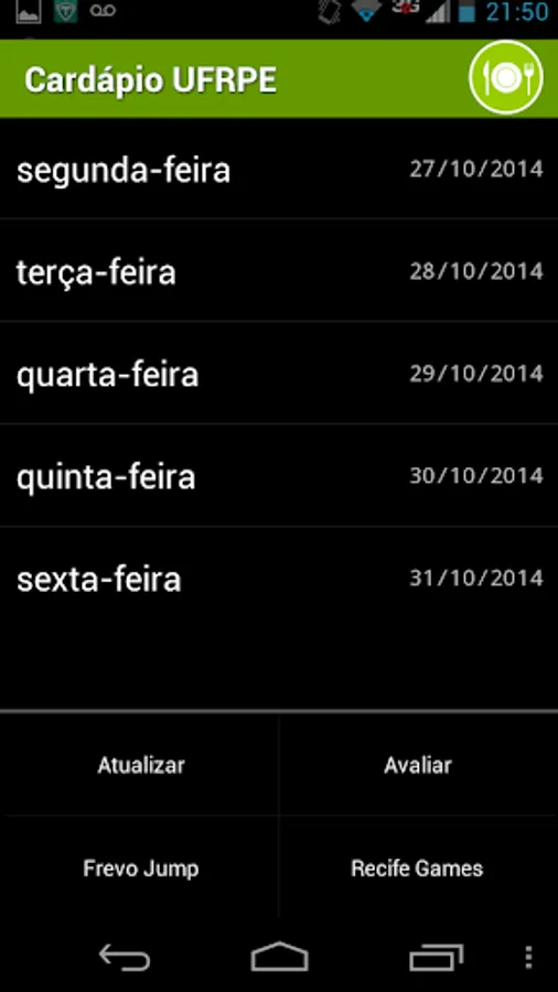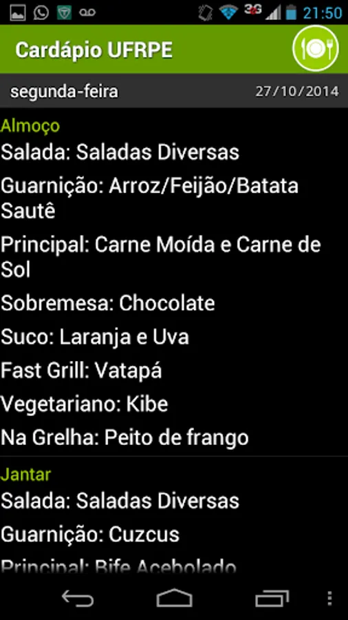 With the Menu UFRPE is not necessary to have an internet connection to view the menu. Just only one update per week!