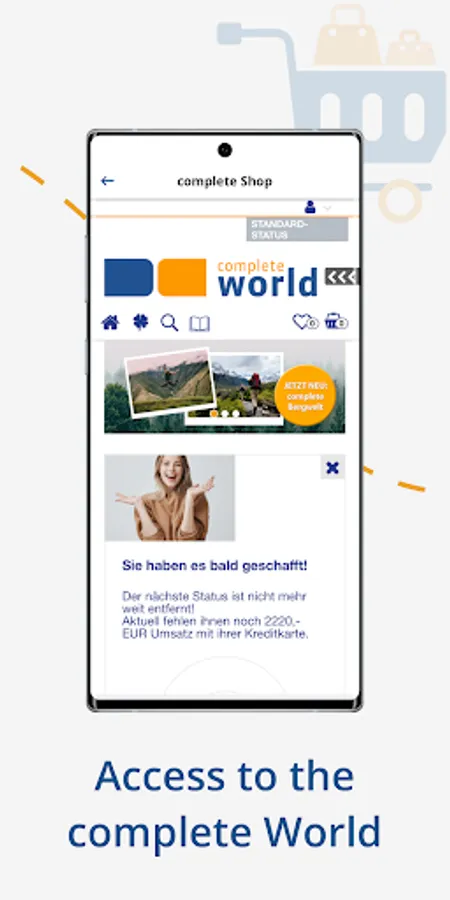 • complete World: The complete World offers you not only tried-and-tested products at the card complete special price, but also numerous exclusive offers from our partners in the hotel, culture and lifestyle sectors, as well as lots of new and interesting things.