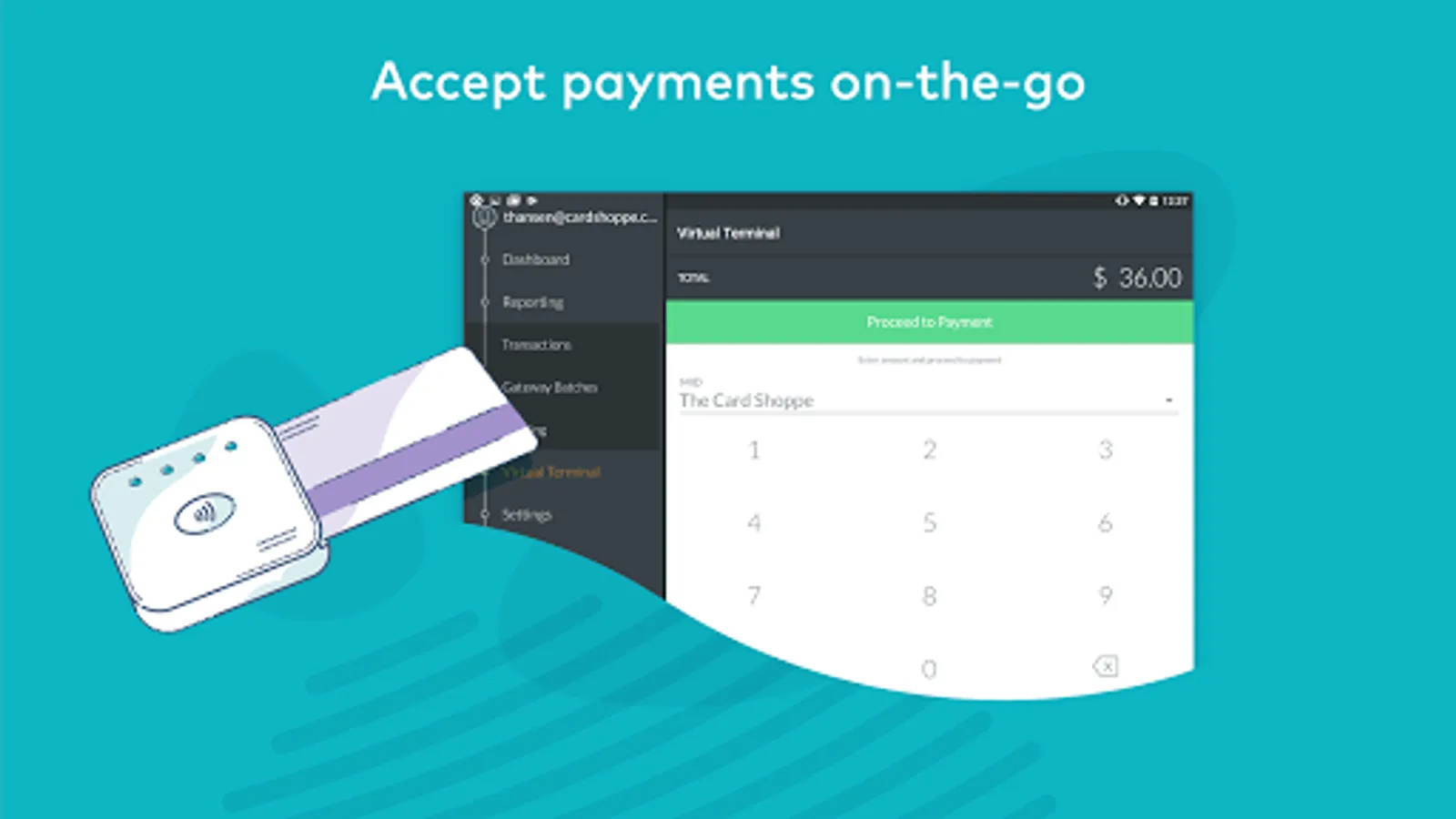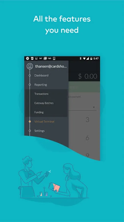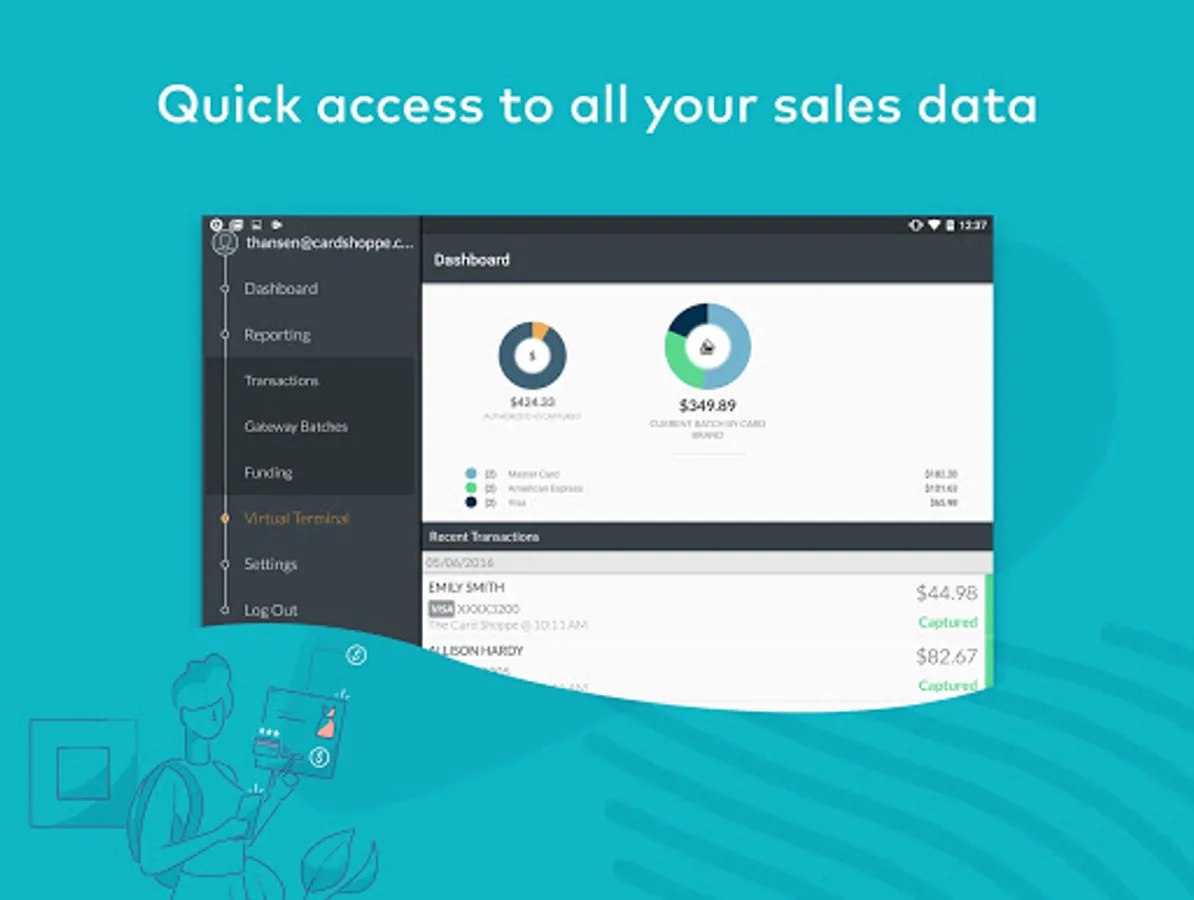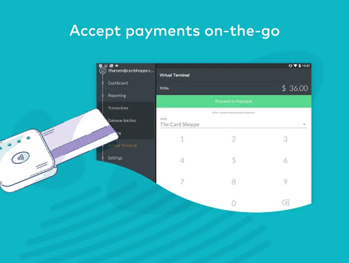 • Virtual Terminal: Process payments for all major credit cards.